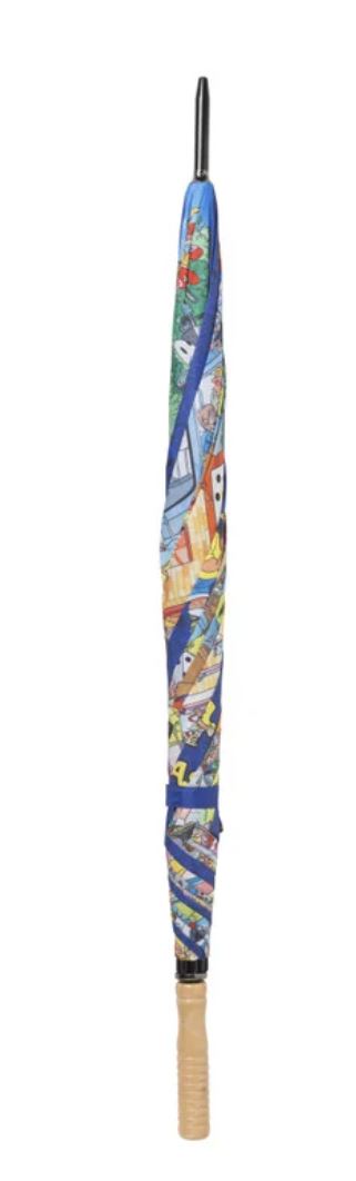 Detta paraply skyddar dig inte bara från regnet, utan tar dig också med på en resa genom en underbar värld full av komiska detaljer och dolda skämt, allt ritat på Jan van Haasterens sätt.